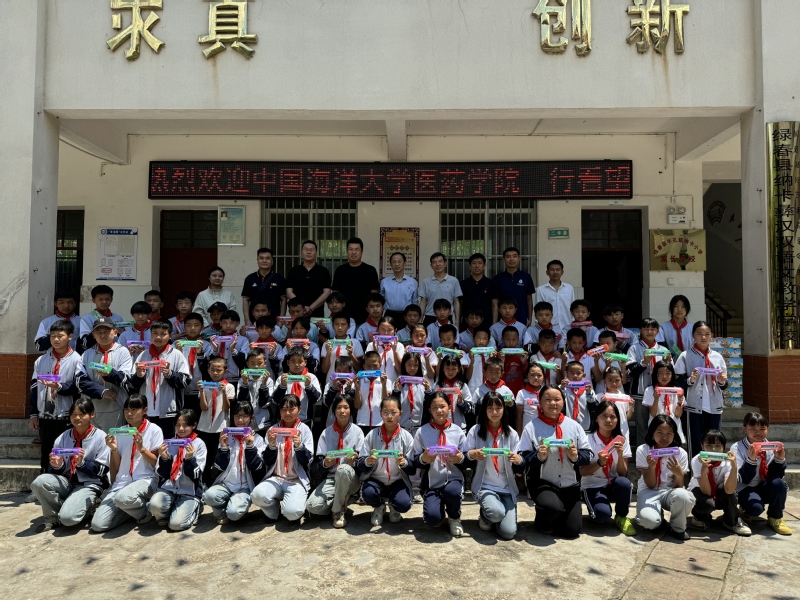 6月13日上午,调研组首先来到绿春县牛孔镇中心小学,与学校领导及暑期来青岛研学的学生与家长进行了座谈。在听取了学校领导有关学校基本情况的介绍后,王震表示,定期选派优秀学生来青调研是学院与中心小学定点帮扶工作的重要内容,学院将继续巩固帮扶成果,不断拓展帮扶领域,为学校的发展提供更多的支持和帮助。在校期间,调研组与中心小学举行了“定点帮扶学校”授牌仪式,参观了学校民族传统教学成果展示,学院科普团成员为孩子们带去了一堂生动有趣的海洋药物科普课。