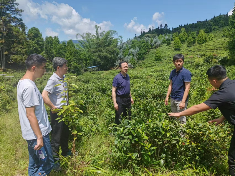 图6 调研组实地了解茶园种植情况