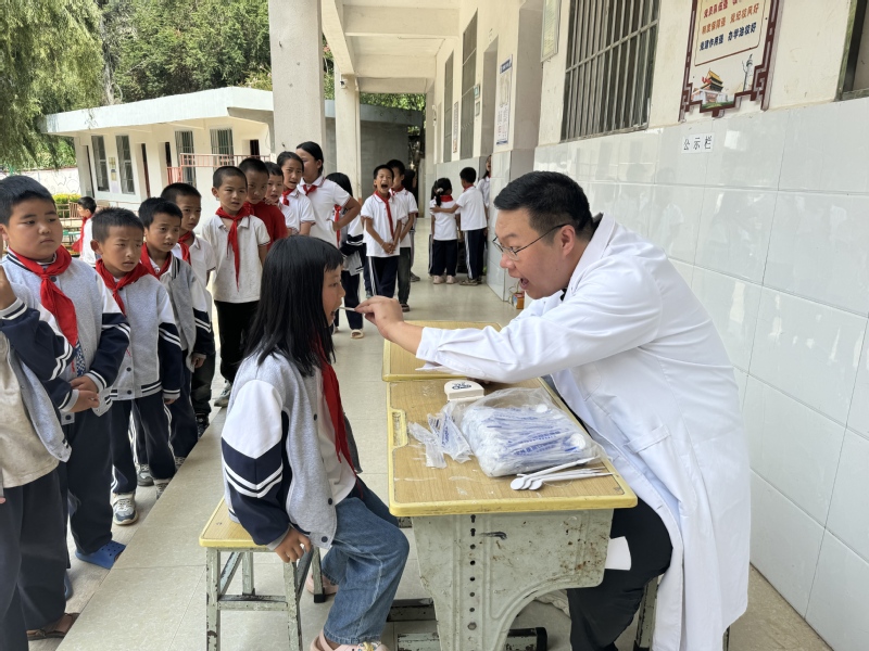图5 于强主任为纳卡小学学生进行口腔义诊