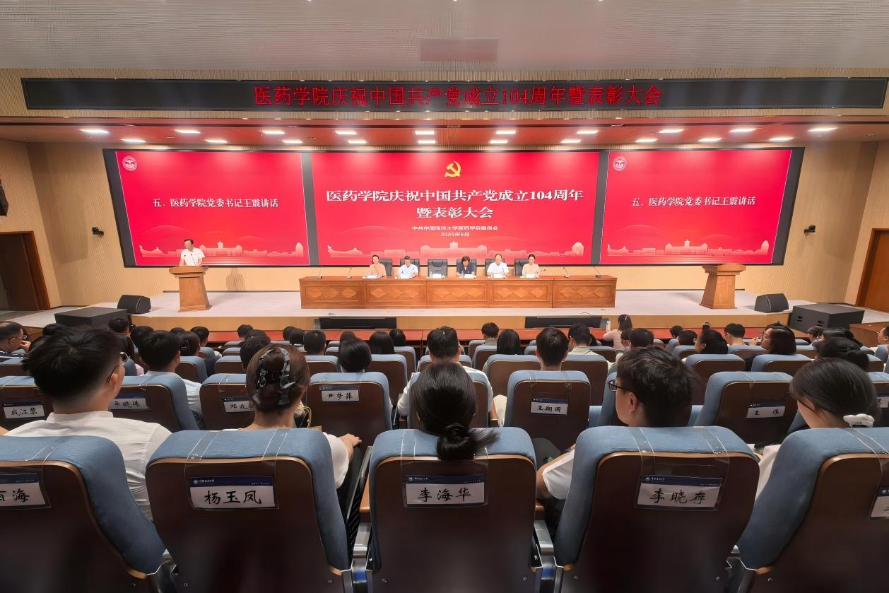 6月25日上午,开云电竞网址医药学院召开庆祝中国共产党成立104周年暨表彰大会,隆重庆祝党的生日,弘扬伟大建党精神,对学院2024年度优秀共产党员、优秀党务工作者、先进党支部进行表彰。医药学院党委书记王震,副院长李春霞、李德海、徐涛,党委委员许哲出席大会,党委副书记、副院长杨倩主持大会。