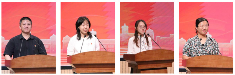 优秀共产党员代表、药理学教研室主任王伟和2022级药物化学博士研究生王菁,优秀党务工作者代表、鱼山校区研究生第五党支部组织委员刘倩,先进党支部书记代表、青岛海洋生物医药研究院邱培菊分别作了发言。