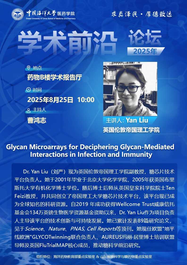 报告题目:Glycan Microarrays for Deciphering Glycan-Mediated Interactions in Infection and Immunity