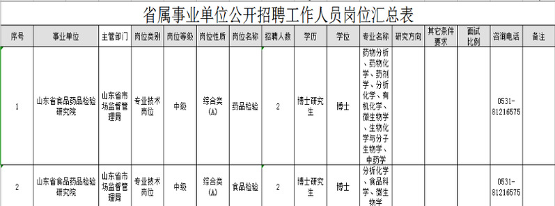 通过省人力资源社会保障厅网站(http://hrss.shandong.gov.cn)和山东省食品药品检验研究院网站(http://www.sdifdc.org.cn)面向社会发布招聘信息。
