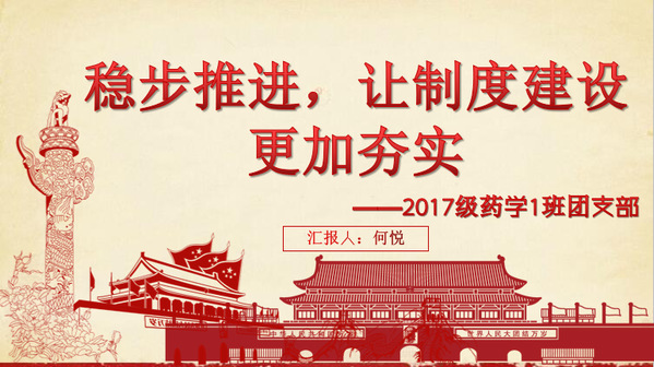 首先,团支书何悦进行了主题为“稳步推进,让制度建设更加夯实”的团支部工作总结,从制度建设、思想引领、领航计划进展情况、团员素质发展对2019年的团支部建设情况进行了总结和反思,并对未来支部建设进行了展望。