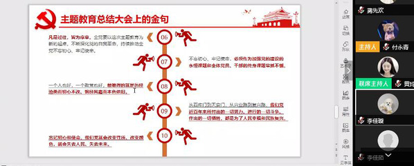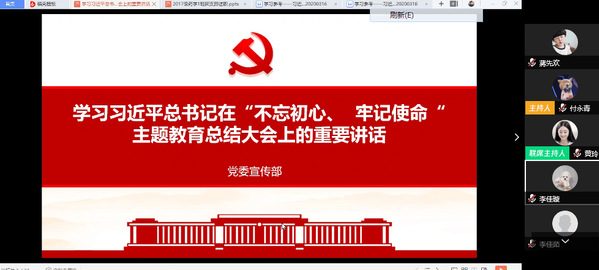 接下来,团支书何悦组织学习了习近平总书记在“不忘初心、牢记使命”主题教育总结大会上的重要讲话和新时代党内集中教育探索新经验,讲解初心和使命对于党的发展的重要意义。