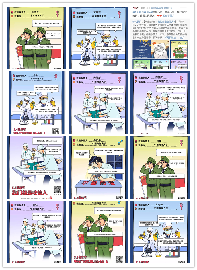 为贯彻学习习近平总书记给北京大学援鄂医疗队“90后”党员重要回信精神,医药学子们积极参与教育部思政司推出的“我们都是收信人”活动,用信仰点燃爱国火焰,一言一语饱含了医药学子们对援鄂医疗队的深深敬意与为祖国建设添砖加瓦的决心。