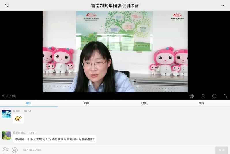 随后,鲁南制药集团经理刘杰通过视频连线的方式带领同学们云参观鲁南制药集团新时代药业57车间,该车间为生物制品产业园区,通过参观该车间内超滤、离心、提纯等相关设备,同学们对相关的实验仪器以及工作环境有了更加深入的了解,有利于同学们明确就业目标和方向,为寻找职业发展道路奠定基础。