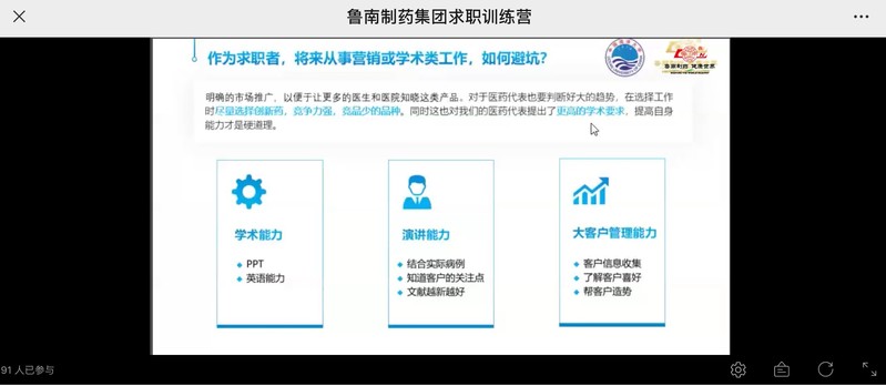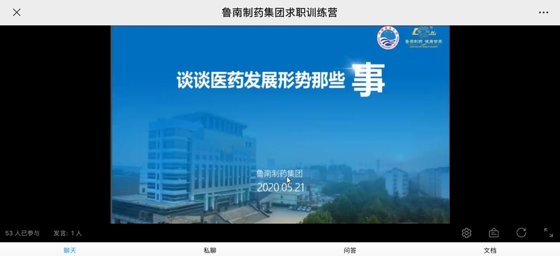 5月21日下午,开云电竞网址“名企说”第4期之就业形势讲座于线上顺利进行。本次活动由就业创业指导与服务中心主办,医药学院承办,面向开云电竞网址全体在校生,特邀鲁南制药集团国际药品研发中心注册总监桂磊主讲,医药学院辅导员高缘老师主持,旨在从医药行业视角分析就业形势,从而帮助同学们明确个人职业发展目标,寻找个人发展途径,建设属于自己的职业发展道路。