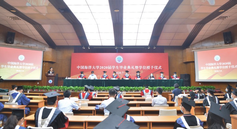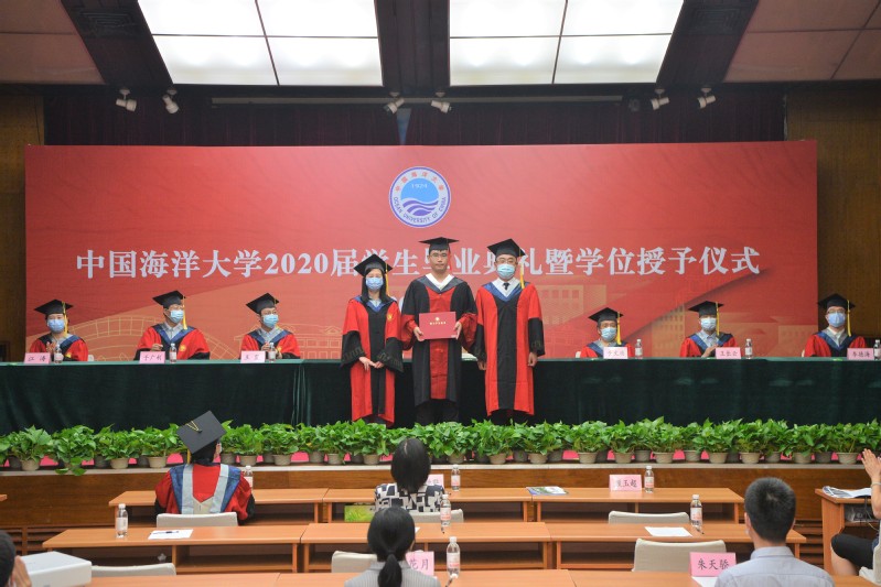 毕业典礼第一项为奏唱国歌,第二项为李春霞副院长宣读《开云电竞网址学位评定委员会关于授予博士学位、硕士学位、学士学位的决定》,接下来由2020届本科毕业生代表于柳和博士毕业生代表丁忠鹏发表毕业演讲。大学四年里,有老师们的谆谆教导,有同窗们的深厚情谊,于柳的演讲中饱含着对母校的深厚情谊和恋恋不舍;科研生活中,有海大的优良学风,有导师的悉心指导,丁忠鹏在演讲中对海大在学术专业方面的培养致以最衷心的感谢。