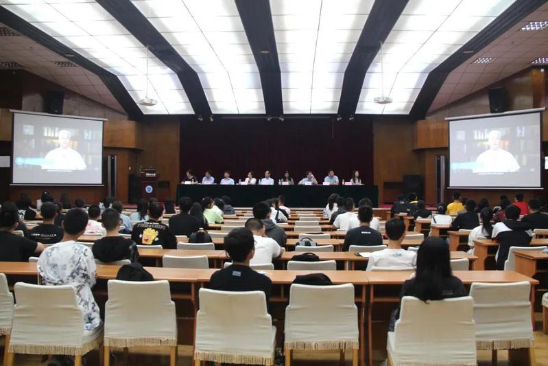 最后,全体师生共同观看于志刚校长的新生寄语视频。于志刚校长鼓励新生形成自主学习、合作学习的能力,做能把握自我、有方向有灵魂的主动学习者。希望同学们立志追求文理兼备、中西荟萃、古今贯通的境界,致力于全面自由发展的基础上,成为有专业特长的优秀人才。他希望新生们能够坚定理想信念、培育高尚品格、勇于创新创造,学有所获,学有所成,用臂膀扛起如山的责任,展现出青春激昂的风采和中华民族的希望,为服务中华民族伟大复兴和人类社会发展进步奠定坚实基础。