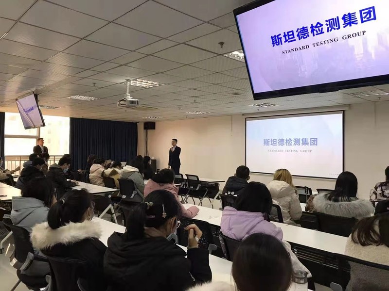在公司相关负责人的带领和讲解下,同学们参观斯坦德集团展厅,初步了解了斯坦德集团的概况,斯坦德集团是一家大型专业的第三方检验检测机构,公司拥有计量认证资质,获中国合格评定国家认可委员会实验室认可,是一家集轨道交通、防火阻燃汽车零部件、电线电缆、高分子材料、航空航天、能源金属、化工等领域产品服务于一体的综合型检测机构。集团实验室主要分为综合贸易、生命科学、生态环境及研发分析四个板块。