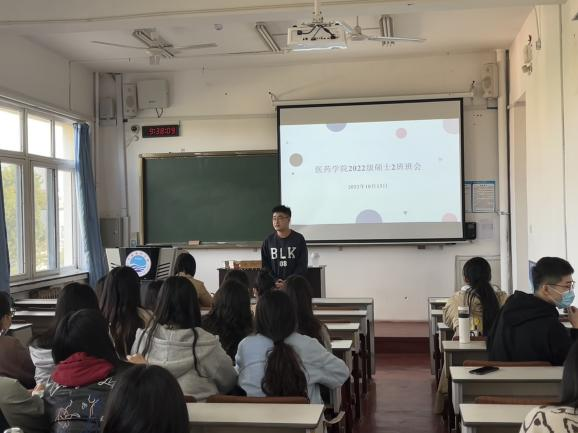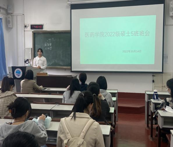 本站讯 2022年10月11日至10月14日,医药学院2022级硕士研究生各班召开了新生班会,会议由带班辅导员董朝老师主持。
