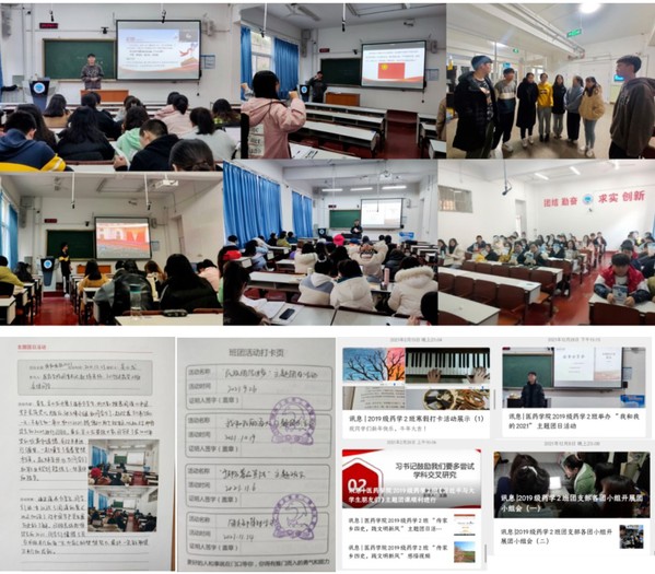 2019 级药学 2 班团支部以推动支部成员全面发展为核心,以“培养担当民族复兴大任的时代新人”为目标,心系团员青年,通过规范组织建设、发挥组织优势,不断提升支部组织力、引领力、服务力和大局贡献度,凝聚成了团结协作、自强不息的先进集体,培养了一批朝气蓬勃、信念坚定的优秀团员。