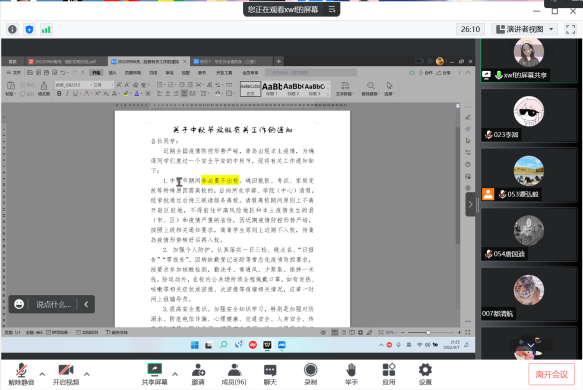 本站讯 9月7日晚,医药学院2021级本科生在线上顺利开展“疫情防控”主题班会,本次会议由2021级本科生辅导员徐文锋主持,2021级全体本科生同学参加了本次会议。