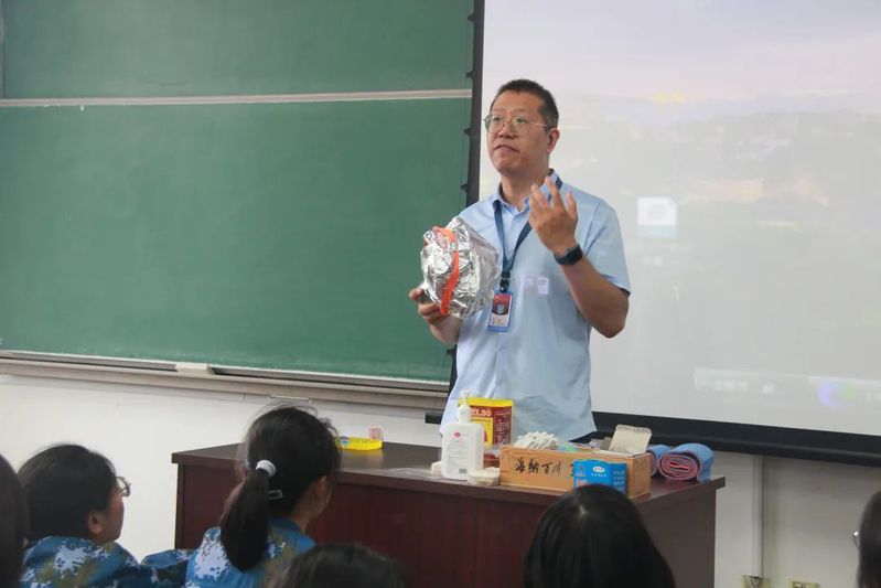 紧接着,相关人员向新生们介绍了如何正确预防和对待火灾以及防毒面具的使用。