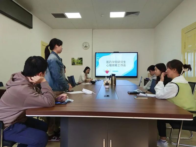 会议中,研究生心理朋辈高年级同学林瑶和于洋提出了一些关于研究生心理活动的建议,各研究生对心理活动的方式以及合适的时间展开了讨论,建议可以从实验室、宿舍为单位展开心理活动。