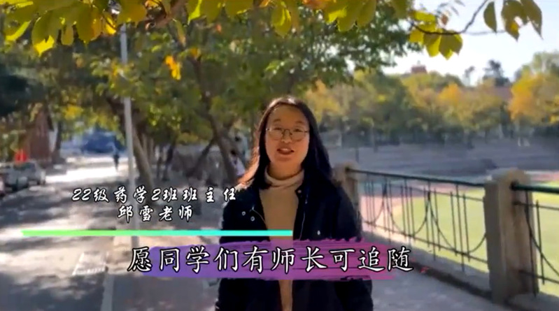 最后是老师们对新生们的祝福。老师们迎接新生到来的同时,也对同学们怀有希冀,22级的两位班主任邱雪老师、付鹏老师,辅导员董朝老师、徐文锋老师、郭吉昱老师、孟凡清老师都通过视频表达对新生们的祝愿。