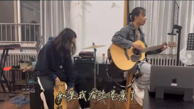 祝福之后,是鱼山吉他社的《鼓楼》和王子豪、王灏的歌曲《我的一个道姑朋友》,美妙的琴音和歌声送出了他们的祝愿,也让晚会渐渐接近尾声。