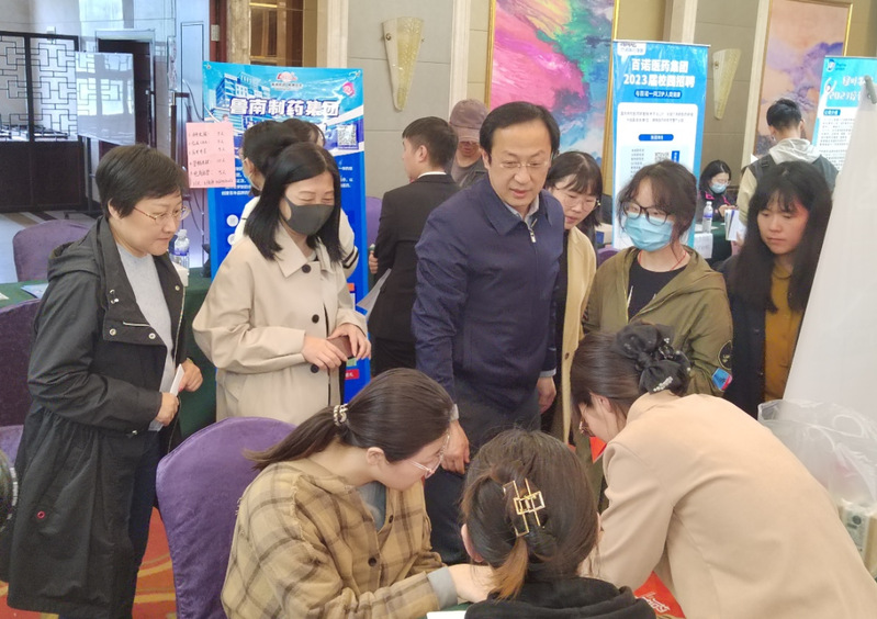 开云电竞网址学生就业创业指导与服务中心副主任颜彬、医药学院党委书记王震、院长吕志华、鱼山各学院党委副书记、辅导员等多位老师深入双选会现场,对用人单位来校招聘人才表示欢迎,关心关注毕业生就业工作,进一步了解用人单位招聘情况和毕业生就业需求,现场指导学生参会求职。