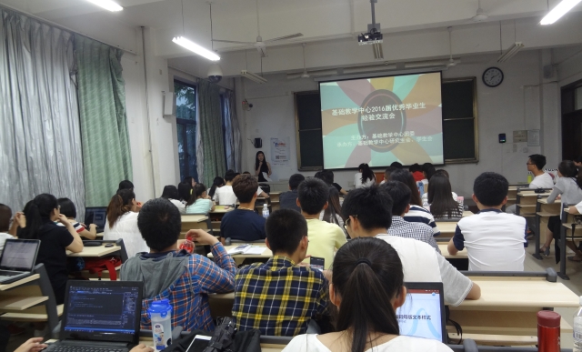 为了丰富大学生和研究生对大学生活的认识,引导他们培养向上、向前的精神,从而有一个明确的目标和长远的规划,提前为以后就业、考研或考博做更好地准备,基础教学中心于6月1日晚七点在4404教室举办2016届行远思恩系列教育活动-2016届优秀毕业生经验交流会。此次交流会由学生就业创业指导与服务中心主办,基础教学中心承办。交流会吸引了不少学生,场内座无虚席,气氛活跃。