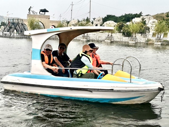 在茶山风景区,大家或结伴乘船游湖,赏景聊天,或三俩为伍漫步山间,采摘野果。一路欢声笑语,在山水间怡人风光中亲近自然、感受秋色,顿觉胸襟坦荡,惬意无限!