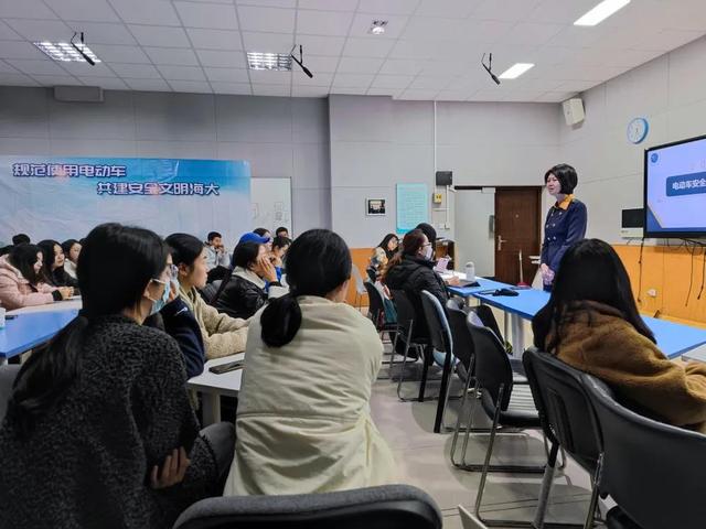 紧接着,李珍带领大家学习国家有关电动车使用的法律法规和学校的相关政策。她还就电动车、自行车牌照申请、领取和悬挂做进一步解释说明,提醒大家规范用车、文明骑行。