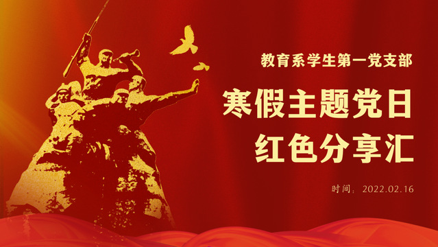 至此,教育系学生第一党支部寒假主题党日之红色分享汇圆满结束,通过两期寒假分享活动,支部的同志们共同走过五大红色教育基地,学习22部优秀的红色电影和纪录片的精神内核。