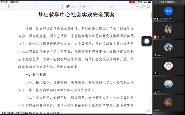 2022年1月21日下午,基础教学中心寒假社会实践出征仪式依托线上腾讯会议开展。本次会议由团委李珍老师主持,全体参与寒假社会实践的成员参加。会议旨在强化学生的安全意识,获悉实践须知,明确实践考核要求,帮助参与实践同学顺利开展实践活动。