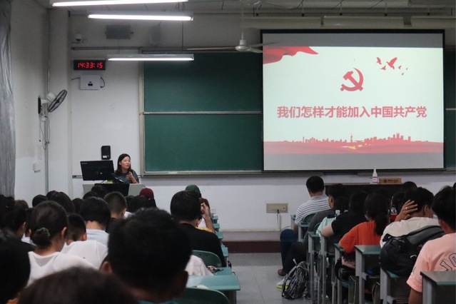 谢金薇重点强调了疫情防控的严肃性。当前疫情防控形势仍然严峻,她向大家详细讲解了请销假制度及流程,并提醒新生们在公共场合注意戴好口罩,遵守学校疫情防控规定。随后开展了入党启蒙教育,从对中国共产党的了解出发详细介绍入党流程和环节,并温馨提示入党所需注意的事项。