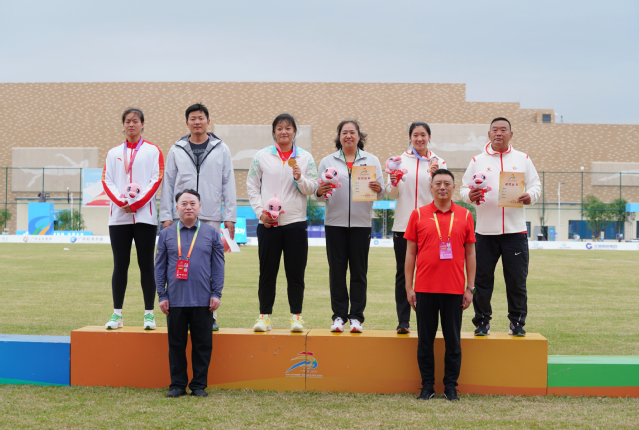姜志超同学(第二排左三)获女子铁饼项目金牌