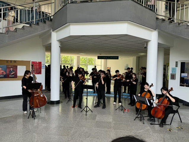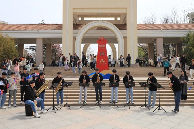 自4月8日第一场演出以来,“音乐快闪”系列活动已举办六期,覆盖崂山、鱼山、西海岸三个校区,艺术系全体本科生参与演出,为同学们提供了一系列音乐盛宴。此次活动是音乐和体育的结合,是一次全新的、有意义的尝试,展现了两者之间共通的“美与力量”,带给现场参与同学们全新的体验,展现了同学们积极向上的生命力。《钢铁洪流进行曲》激昂澎湃,富有感染力和震撼力,参与“开学第一跑”的同学们意气风发,为了未来而奔跑,向着前方而奔跑。值得一提的是,艺术系多位优秀校友为参加本次活动,自3月份起每周末到校参加排练,希望以此次活动为契机,表达对母校的感恩之情,祝福母校生日快乐。