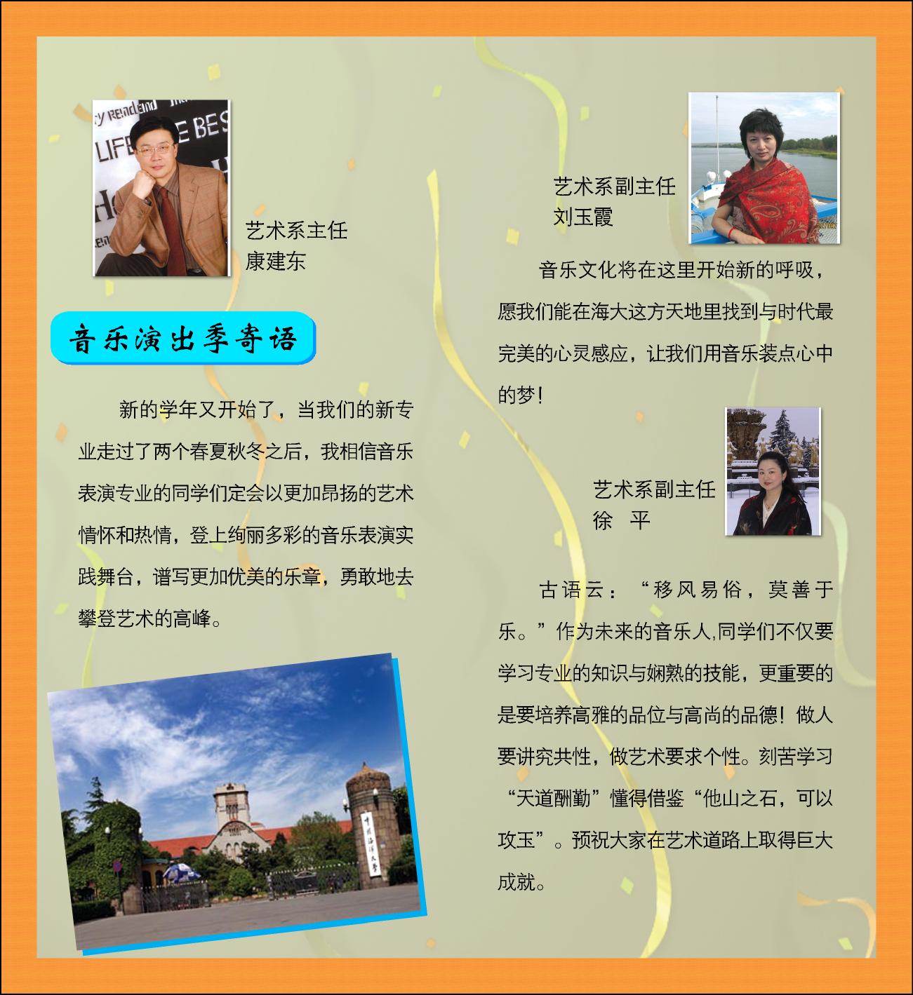 校址:青岛市鱼山路5号 •邮编:266003 •电话:0532-82032757 •Email:ysx2@ ouc.edu.cn Department of Arts , Ocean University of China |