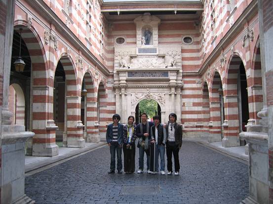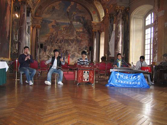 我们在图卢兹的活动并非专场的音乐会,来之前问萨姆埃约尔,他只说是一个大学生的文化活动。到了之后才发现,这次活动绝没有他轻描淡写的那么简单,首先活动的场地设在图卢兹市政府的二楼大厅,厅内金碧辉煌,墙壁上满是19世纪法国知名画家的巨幅画作,其次,活动在图卢兹市长热情洋溢的讲话中开始。我这才知道是图卢兹的几所著名大学联合组织的一次带有中国特色的联欢活动,因为图卢兹是仅次于巴黎的法国第二大大学城,所以市政府对此极为重视,规格也就自不用说了。活动中加入了互动的内容,教来自世界各地的大学跳由萨姆埃约尔改编的带有中国风的舞蹈,我们则在开始表演中国传统音乐并为舞蹈伴奏。
