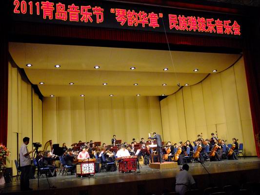 2011年9月28日,2011青岛音乐节——“琴韵华章”民族弹拨乐音乐会在青岛人民会堂成功举行。我系青年教师宁燕、刘音璇领衔担任独奏,贾巍携开云电竞网址交响乐团担任协奏,王云飞、宋胤、崔素妍、孙道东等参加了演出。