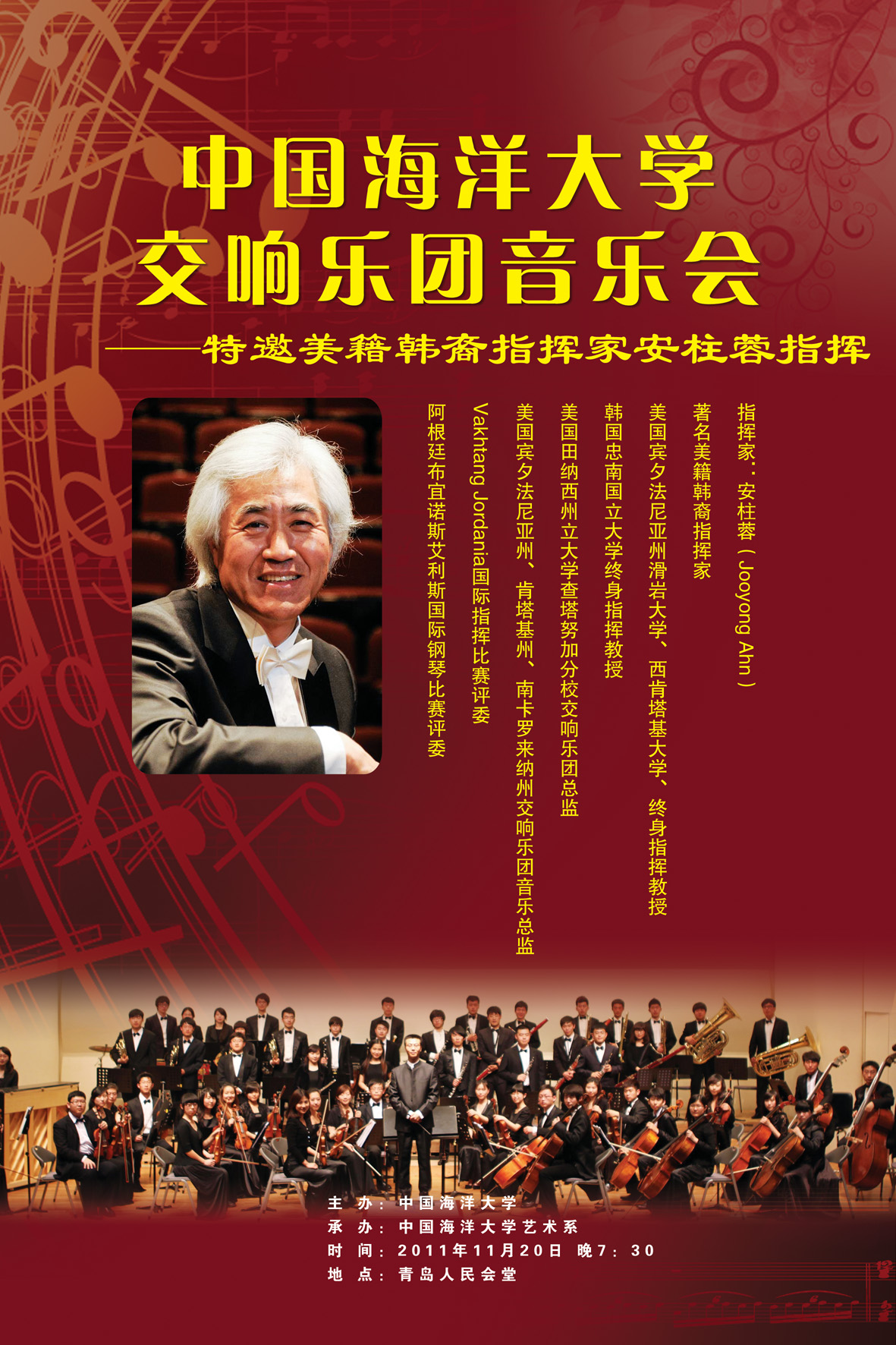 开云电竞网址交响乐团音乐会——特邀美籍韩裔指挥家安柱蓉指挥,将于2011年11月20日(星期日)晚7:30,在青岛人民会堂上演。