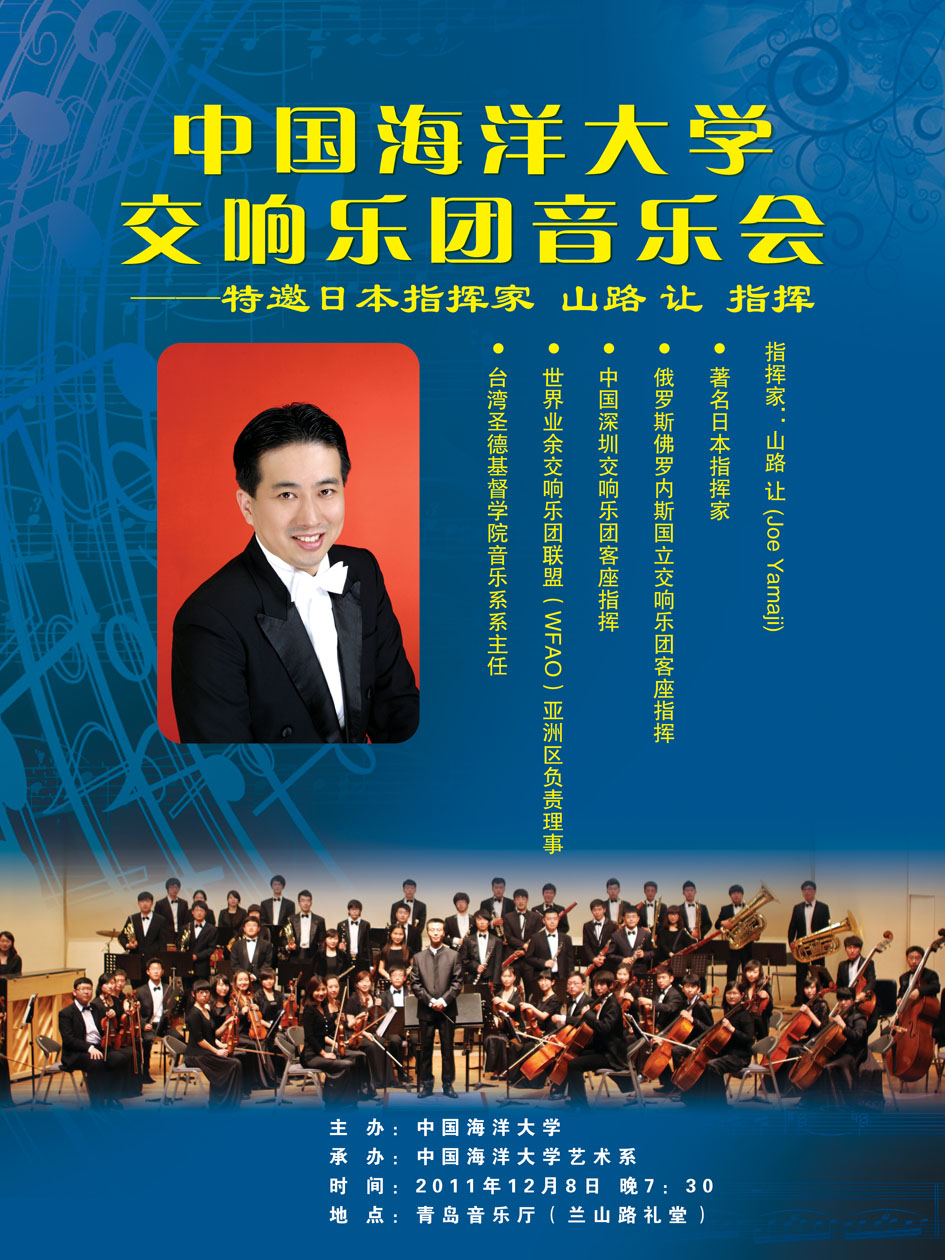 开云电竞网址交响乐团音乐会——特邀日本指挥家山路让指挥,将于2011年12月8日(星期四)晚7:30,在青岛音乐厅(兰山路礼堂)上演。