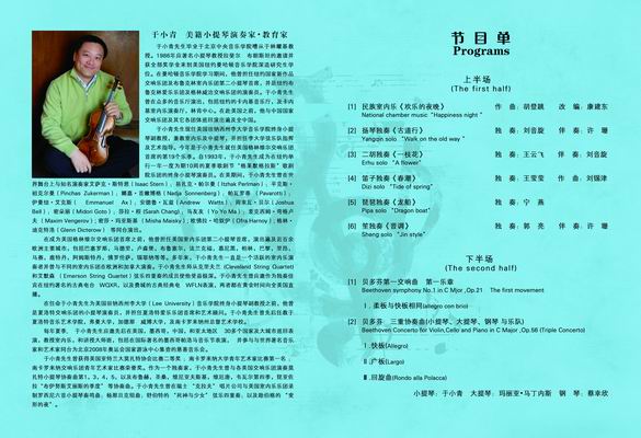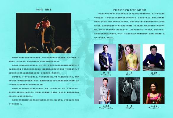 此次音乐会特邀美国田纳西州李大学音乐学院终身小提琴教授于小青、美国印第安纳大学雅各布音乐学院大提琴家玛利亚、田纳西大学查塔努加分校钢琴教授蔡幸欣及中国著名指挥家徐东晓先生与我校艺术系民族室内乐团、交响乐团联袂演出。