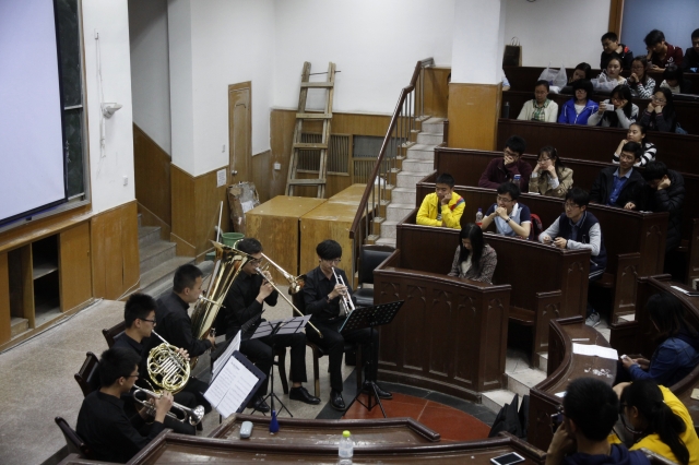 此次互动艺术系师生将为生命学院的同学们进行种类多样的音乐表演,演出分为两个部分,第一部分为西洋乐器的演奏与讲解,曲目包括《莫扎特弦乐四重奏op.525》、《baby elephant walk》,演出乐器也多种多样,例如萨克斯,铜管等。第二部分为民族乐器的表演。乐曲多轻松愉悦,且广为人知。例如《春江花月夜》、《冬猎》等。演出的乐器有扬琴、笙、二胡、琵琶等。活动中同学们不仅能感受到音乐的魅力,接受艺术的熏陶,更重要的是,在这一场小型音乐会中,艺术系师生们将针对乐器,曲目为大家一一详细讲解,让同学们了解乐器的构造,演变,了解每首乐曲所表达的内容。使大家在享受音乐的美感的同时,也能更深层次的这美感背后所表现的内容。另外,活动中欢迎生命学院的同学们踊跃提问,艺术系师生们都会耐心为大家解答。