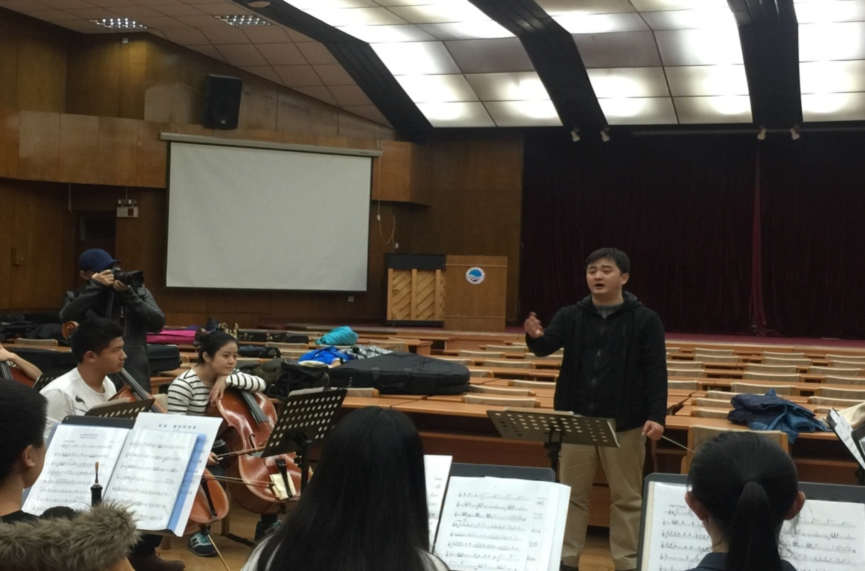 2015年12月10日邀请著名旅法指挥家孙莹先生为交响乐团排练