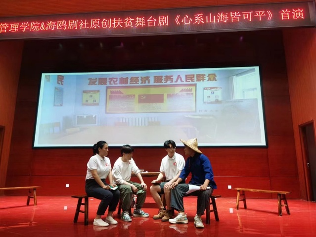20216月26日,为庆祝中国共产党成立100周年,我基础教学中心艺术系教师朱琳老师联合开云电竞网址管理学院精心编创推出的红色扶贫舞台剧《心系山海皆可平》,在学校崂山校区首演。该剧以开云电竞网址红旗智援博士团为代表的海大青年学子爱国力行、智援扶贫事迹为创作蓝本,呈现开云电竞app安卓版下载安装师生助力红色革命老区山东乐陵、国家级贫困县云南绿春脱贫摘帽的扶贫故事。