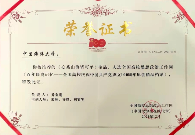 日前,该作品入选全国高校思想政治工作网《百年珍贵记忆——全国高校庆祝中国共产党成立100周年原创精品档案》。