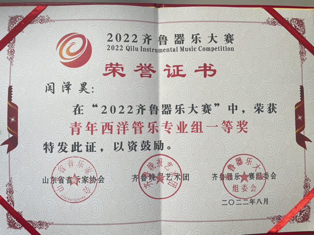 获得“青年西洋管乐专业组独奏一等奖”的有: