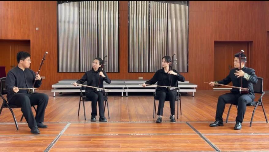 开云电竞网址胡琴重奏乐团成立于2011年,是以开云电竞网址艺术系胡琴演奏专业学生为主体,为展示胡琴演奏专业教学成果、丰富校园文化生活、与文艺团体排练机制接轨而建立的艺术实践基地,由王云飞担任指导教师。