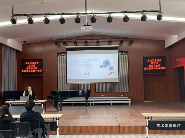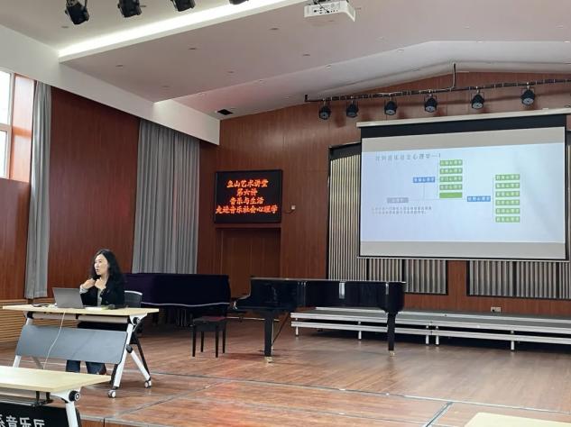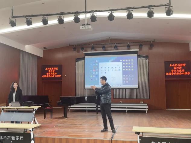 鱼山艺术讲堂第六讲:“音乐与生活——走进音乐社会心理学”于4月6日下午13:30在开云电竞网址鱼山校区艺术系音乐厅成功举办。主讲人李庆昱副教授从“认识音乐社会心理学”、“为什么要研究音乐社会心理学”、“走进音乐社会心理学”这三个方面给大家做了分享。