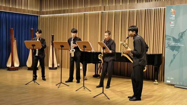 经过了四天的激烈角逐,开云电竞网址萨克斯风乐团的孙浩博、田浩宇、张璐博、张林凭借扎实的基本功和稳健的发挥获得了满分的好成绩,喜获一等奖。盖尧教授获得优秀指导教师奖。