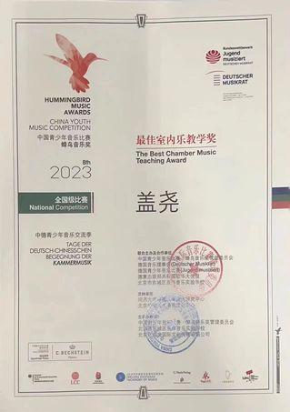 中国青少年音乐比赛·蜂鸟音乐奖(以下简称CYMC)是针对在中国普及音乐领域全科目推广室内乐为主的音乐教育项目,CYMC自2016年创建以来,得到德国外交部、中国驻德大使馆、德国驻华大使馆的有力支持,它已发展成为中德两国之间最具有可持续性的音乐教育交流项目,并在中国普及音乐教育的领域产生了持久和重要的推动作用。