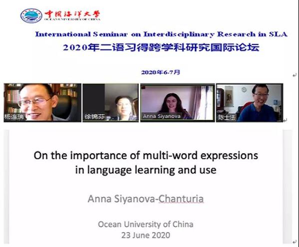 6月23日上午,外国语学院**教授、新西兰维多利亚大学应用语言学高级讲师Anna Siyanova作了题为“On the importance of multi-word expressions in language learning and use” 的线上学术讲座。讲座由中国二语习得研究专业委员会副会长,华中科技大学徐锦芬教授主持。外国语学院院长杨连瑞教授、副院长陈士法教授、院长助理陈颖副教授和近百名教师及硕士、博士生参会。此次讲座采用ZOOM会议与Bilibili视频网站同步直播的形式,共吸引国内外参会者5000余人。此次讲座分为三部分。首先,Siyanova博士讲解了MWEs的概念、分类和特点;其次,强调MWE在二语习得及应用过程中的重要作用;最后,展示了自己以及其团队的相关研究。讲座结束后,徐锦芬教授进行点评总结。在问答环节,Siyanova博士耐心回答了参会者提出的二语学习者MWEs研究的理论基础、如何提升二语学习者MWEs水平等多个问题。