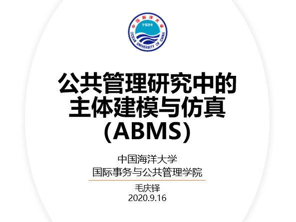 9月16日晚8点,国际事务与公共管理学院学术沙龙第十八期如期举办。本期主讲人国际事务与公共管理学院行政管理系的毛庆铎老师带来了主题为“公共管理中的主体建模与仿真(ABMS)”的学术报告。学院行政管理系主任王印红教授主持沙龙,共50多位师生参与了此次活动。毛庆铎老师结合公共管理二级学科的演变,介绍了公共管理的研究范式,随后引出了主体建模与仿真(ABMS)的研究范式,并对ABMS主要内容的进行了介绍。最后,毛庆铎老师对ABMS未来的研究趋势和发展前景进行了描述。在点评互动环节,王印红教授、许阳副教授结合自己的研究经验,对主体建模及相关前沿研究方法在公共管理中的应用进行了点评,并对该研究方法的未来前景表示了肯定。毛庆铎老师还对与会听众的提问进行了回答。
