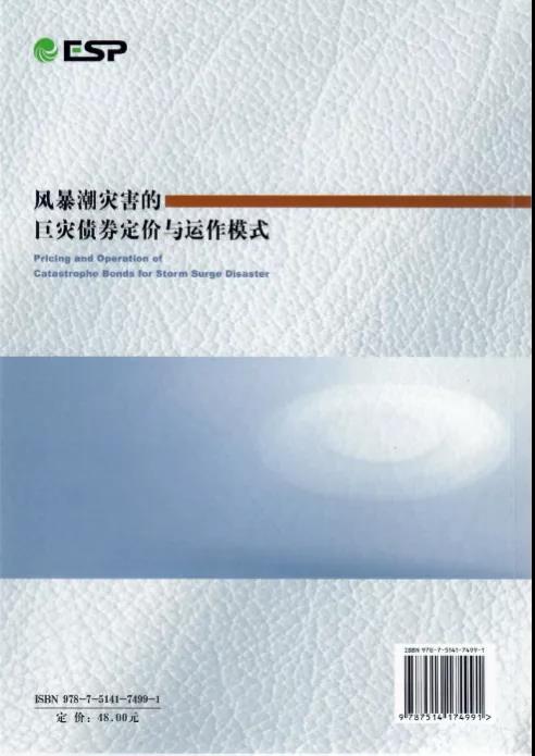 第一,著作《风暴潮灾害的巨灾债券定价与运作模式》是国家社会科学基金重大项目“突发性海洋灾害恢复力评估及市场化提升路径研究(15ZDB171)”的阶段性研究成果。以风暴潮灾害为研究对象,基于巨灾风险证券化的基本原理,将风暴潮巨灾风险管理看作一个涉及“政府-保险市场-资本市场”多种市场构成的综合网络,创新和完善了风暴潮巨灾风险管理技术,拓展了海洋灾害风险管理的思路。