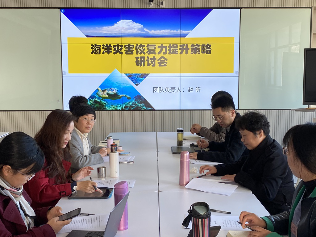 随后,团队成员基于近期的研究成果展开了深入地学术讨论,并从提升策略的研究思路、总体框架、以及市场化提升路径的设计与优化等方面,提出了进一步完善突发性海洋灾害恢复力提升策略研究的意见和建议。